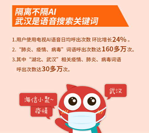 全方位的關(guān)注帶來了對(duì)“醫(yī)護(hù)人員”這一角色的理性認(rèn)知,在海信聚好看,中國首部以醫(yī)護(hù)群體為主角的醫(yī)學(xué)人文紀(jì)錄片《中國醫(yī)生》上榜紀(jì)錄片點(diǎn)播TOP3。與此同時(shí),全國家庭通過聚好看AI,與“隔離”中的武漢傳遞著愛和關(guān)心:紀(jì)錄片榜單中,《武漢日記2020》位居點(diǎn)播榜首;聚好看AI語音的高頻詞匯中,“湖北、武漢”相關(guān)疫情信息等呼出次數(shù)達(dá)30萬+次、“肺炎、疫情、病毒”等詞匯呼出次數(shù)160多萬次。