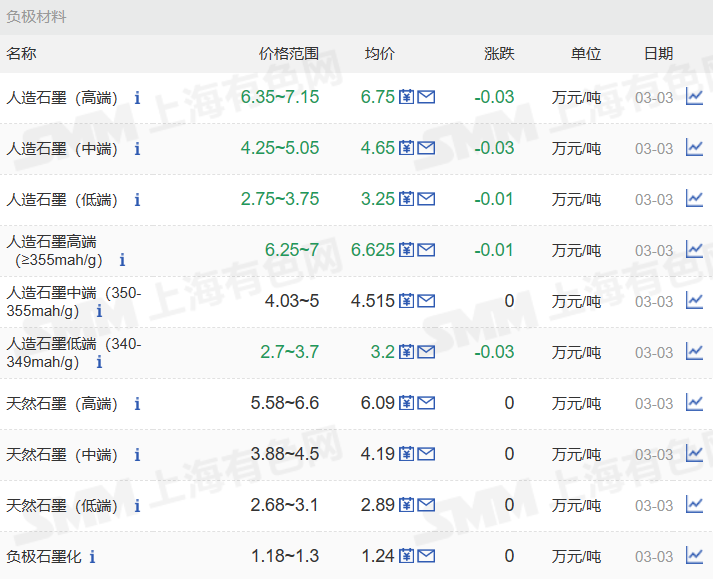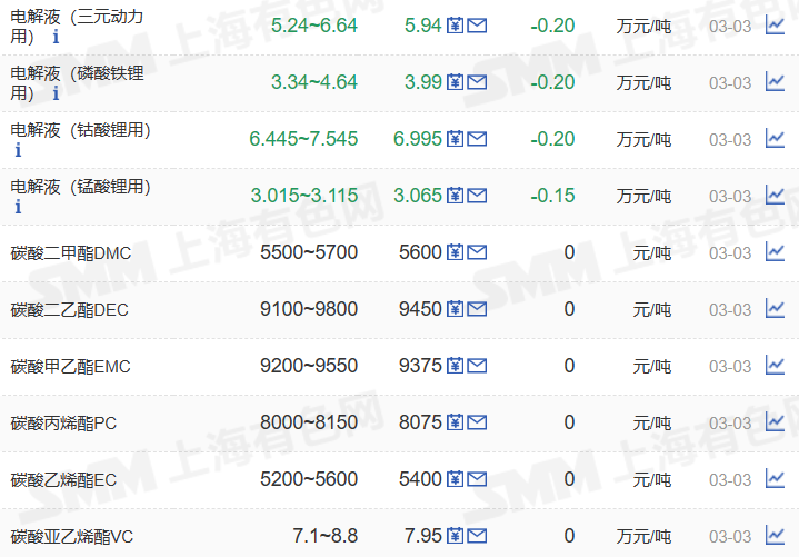 根據上海有色網數據,截至2月24日,電池級碳酸鋰均價37萬元/噸,工業零級碳酸鋰均價33萬元/噸;電池級氫氧化鋰(56.5%國產粗顆粒)均價42.25萬元/噸,工業級氫氧化鋰均價39.35萬元/噸。三元材料方面,523多晶、523單晶、622多晶、811多晶均價分別報每噸27.25,29,29.3,35.5萬元。