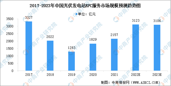 數據顯示,2021年中國光伏發電站EPC服務市場規模達到2157億元,較2020年同比增長18.0%,預計2023年中國光伏發電站EPC服務市場規模將達到3106億元。2021年中國光伏發電站運維和檢修服務市場規模達到145億元,2017-20221年年均復合增長率達20.40%,預計2023年光伏發電站的運維和檢修服務市場規模將達到209億元。