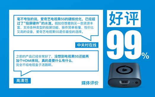 愛奇藝電視果歷經四年的硬件升級和軟件快速迭代優化,滿足百萬用戶投屏追劇需求的同時,掀起了AI投屏追劇新風尚。隨著電視果5S的發布,性能和體驗全面升級,超前行業支持DRM硬解和DIAL投屏協議,開創性的新增HDMI輸入,引領投屏進入全新賽道。