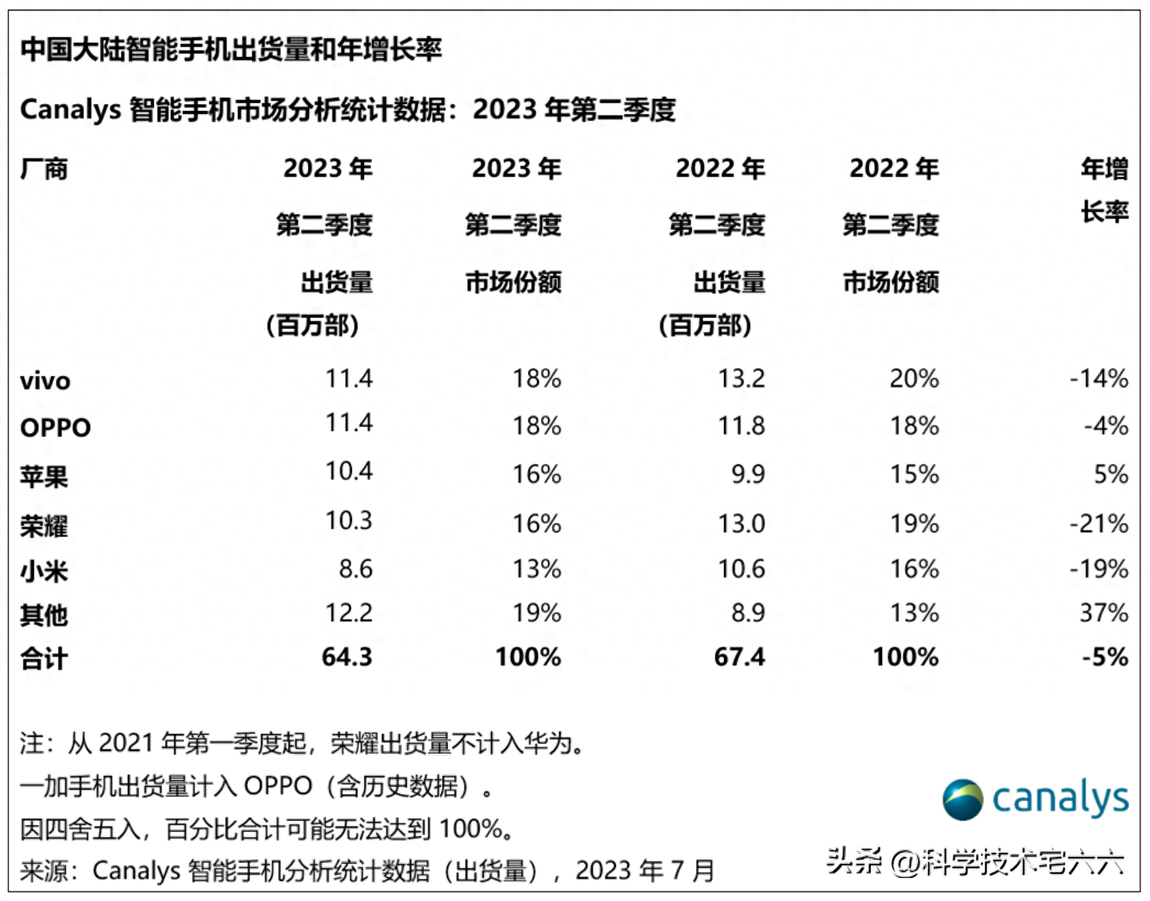 Canalys最新的數據顯示,今年第二季度全球前五大手機品牌分別是三星、蘋果、小米、OPPO、傳音,傳音居然超過了vivo