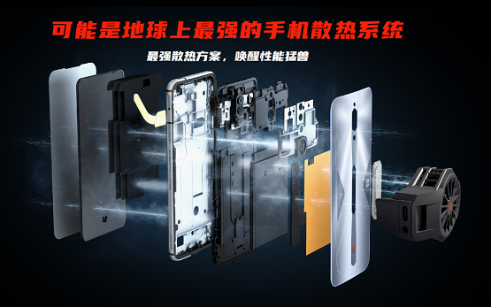 如此一來,當玩家使用紅魔冰風散熱魔盒時,機背的金屬銘牌就會起到極佳的導熱效果,并進一步促進機身內外的熱交換,這也就使得紅魔5S相當于同時使用了兩枚散熱風扇。外加效果能夠直達機身內部的半導體制冷器件,可以輕松實現有史以來最佳的智能手機散熱效果。而這種將內置主動風扇散熱與外部半導體制冷風扇散熱相互聯動,通過ICE?Ag(超導金屬銀工藝)導熱片實現內外熱交換協同的設計,不僅突破了以往行業中單純給手機外掛風扇,卻并未考慮風扇接觸面導熱能力的桎梏,更是再一次引領了可能是智能手機行業有史以來堆料最足,考慮最完善的吸熱、、導熱、排熱體系。