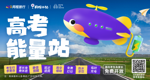 據了解,所有“高考能量站”均提供考生行李寄存、家長免費休息、熱水茶飲、臨時充電服務,在此基礎上,同程“高考能量站”根據不同場景新增了準考證應急打印、惡劣天氣雨具提供、延遲退房服務等需求——酒店場景提供出門提醒和延遲退房服務,同程旅行線下門店場景提供雨傘借取和免費打印服務,具體可咨詢酒店/門店工作人員。