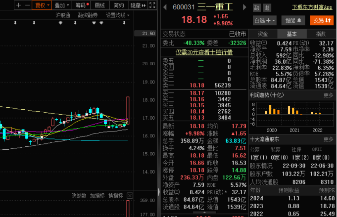 今日工程機(jī)械股集體爆發(fā),其中,低迷了許久的行業(yè)龍頭三一重工尾盤漲停,全天成交額63.83億元,最新股價(jià)18.18元/股。該股今日獲得主力資金凈流入高達(dá)17.3億元,位居兩市第一。