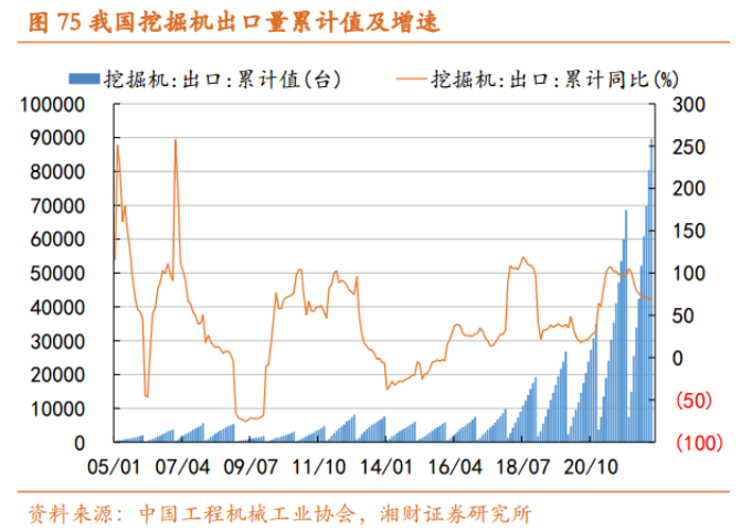 海外方面,雖然受利率提高影響海外整體需求可能有所下滑,但我國(guó)工程機(jī)械企業(yè)仍有望憑借產(chǎn)品優(yōu)勢(shì),持續(xù)拓寬渠道、提高海外市場(chǎng)份額,從而保持出口增長(zhǎng)。