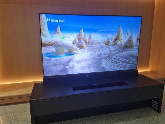 電視形態的未來,則要看可卷曲屏幕激光電視。開機時,屏幕從機體中升起,關機時隱藏在機體內部,做到需要時才出現,實現電視與家居環境的融合設計,真正體現顯示無處不在。