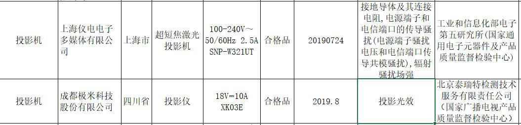 著名投影儀品牌“極米”,榜上有名,不合格原因為——投影光效。