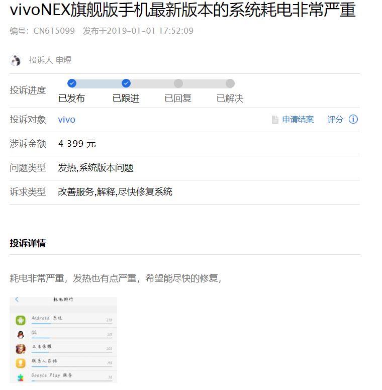 在系統(tǒng)優(yōu)化方面,vivo手機(jī)也成為了吐槽的對(duì)象。近年來(lái),雖然vivo非常注重系統(tǒng)優(yōu)化等方面的問(wèn)題,但令人無(wú)奈的是,或許是因?yàn)榈滋N(yùn)不足,依然出現(xiàn)了不少問(wèn)題。有消費(fèi)者吐槽,vivo的NEX旗艦版手機(jī)在更新最新版本后,系統(tǒng)耗電非常嚴(yán)重。