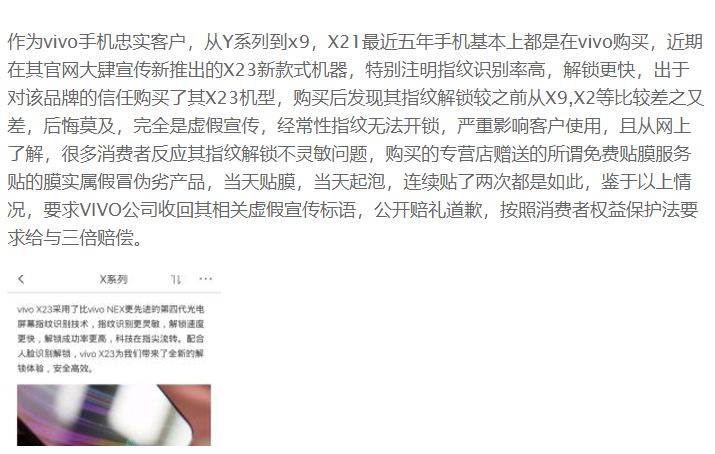 就連vivo引以為傲的屏下指紋解鎖,也成為了消費(fèi)者吐槽的對(duì)象。有多位消費(fèi)者在使用過(guò)程中吐槽vivo X23的屏下指紋解鎖不夠靈敏,存在一定的質(zhì)量問(wèn)題。