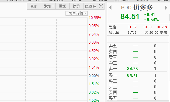 與此同時,拼多多股價也是大跌9.54%。