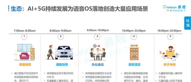 與此同時,語音技術全鏈路升級為語音OS培育豐沃土壤,為語音OS落地創造大量應用場景。易觀在《中國語音OS市場專題分析2020》指出,家居、通勤、辦公會議、親子休閑等都是語音OS落地的主要場景。